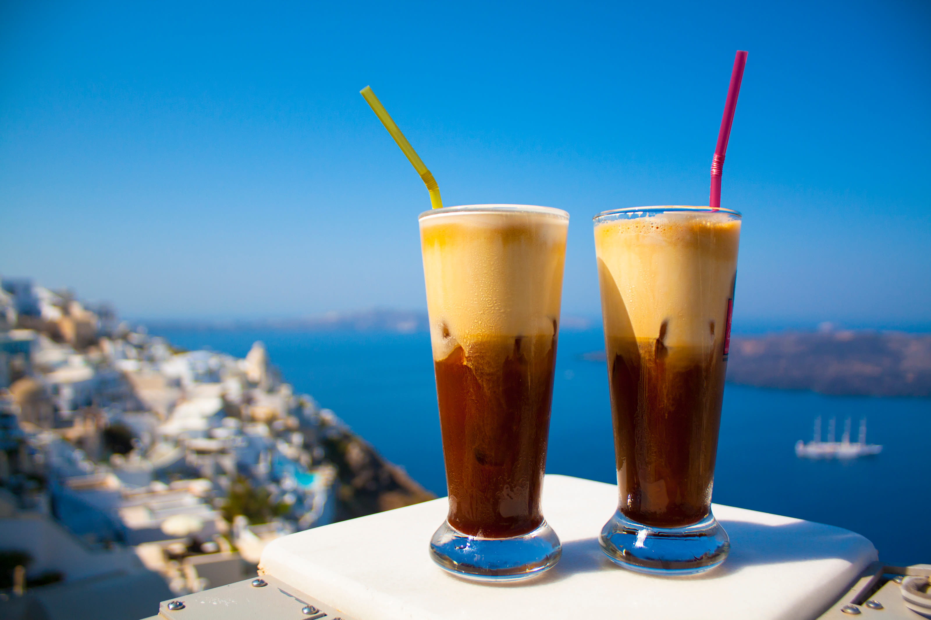 Frappe is a chilled drink made with foamed milk and instant coffee that is especially sought-after during hot days. It was created in 1957 (accidentally) by Dimitris Vakondios when he blended coffee with cold water (when he couldn’t find any hot water) and ice cubes in a shaker. Its popularity boomed in the 60s and 70s, becoming the top coffee choice in the 80s in Athens, and is available in nearly every Greek cafe-- and even in Cyrprus -- today.