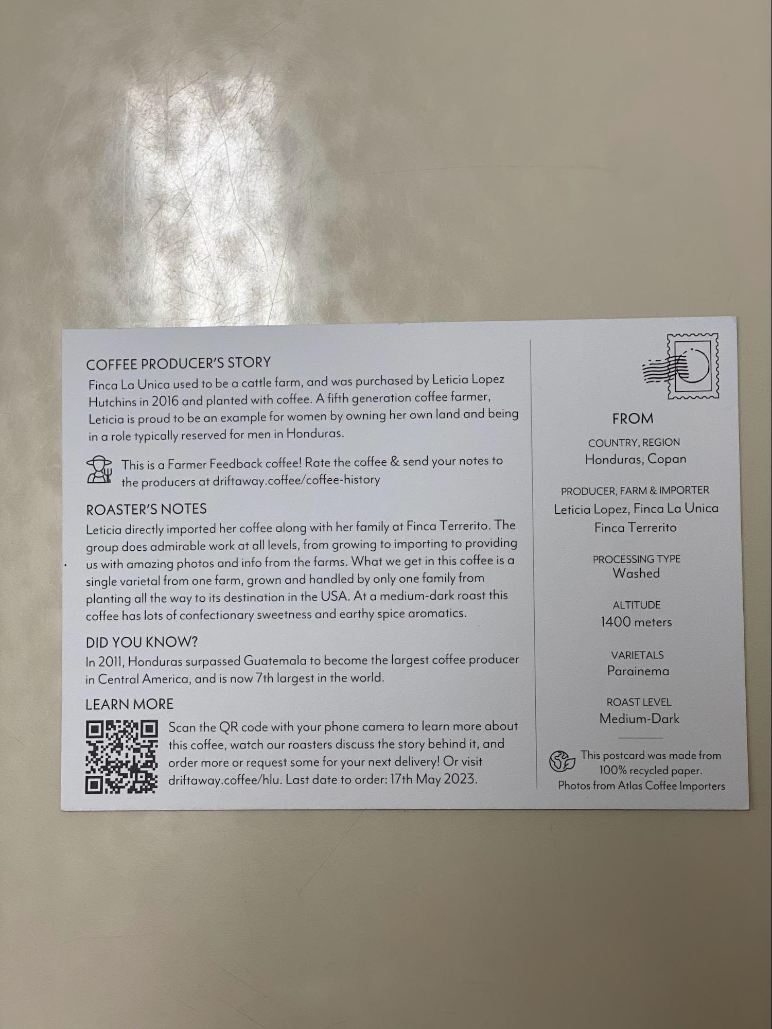 I had the pleasure of trying Driftaway Coffee's Honduras Copan La Unica Blend. As an avid coffee connoisseur, I'm always on the lookout for unique and exceptional brews that transport me to distant coffee-growing regions. Driftaway Coffee has built a stellar reputation for their commitment to sourcing the finest beans and creating captivating blends, and I couldn't wait to try their offering from Honduras.