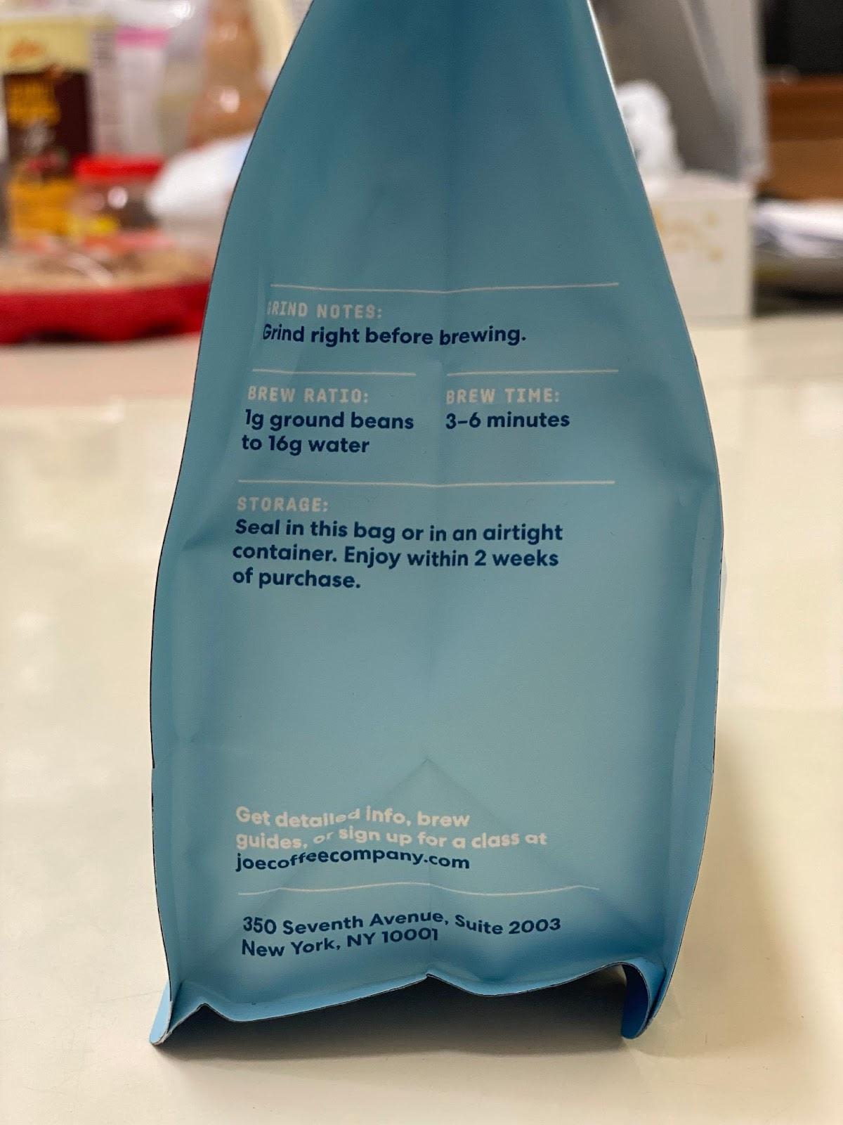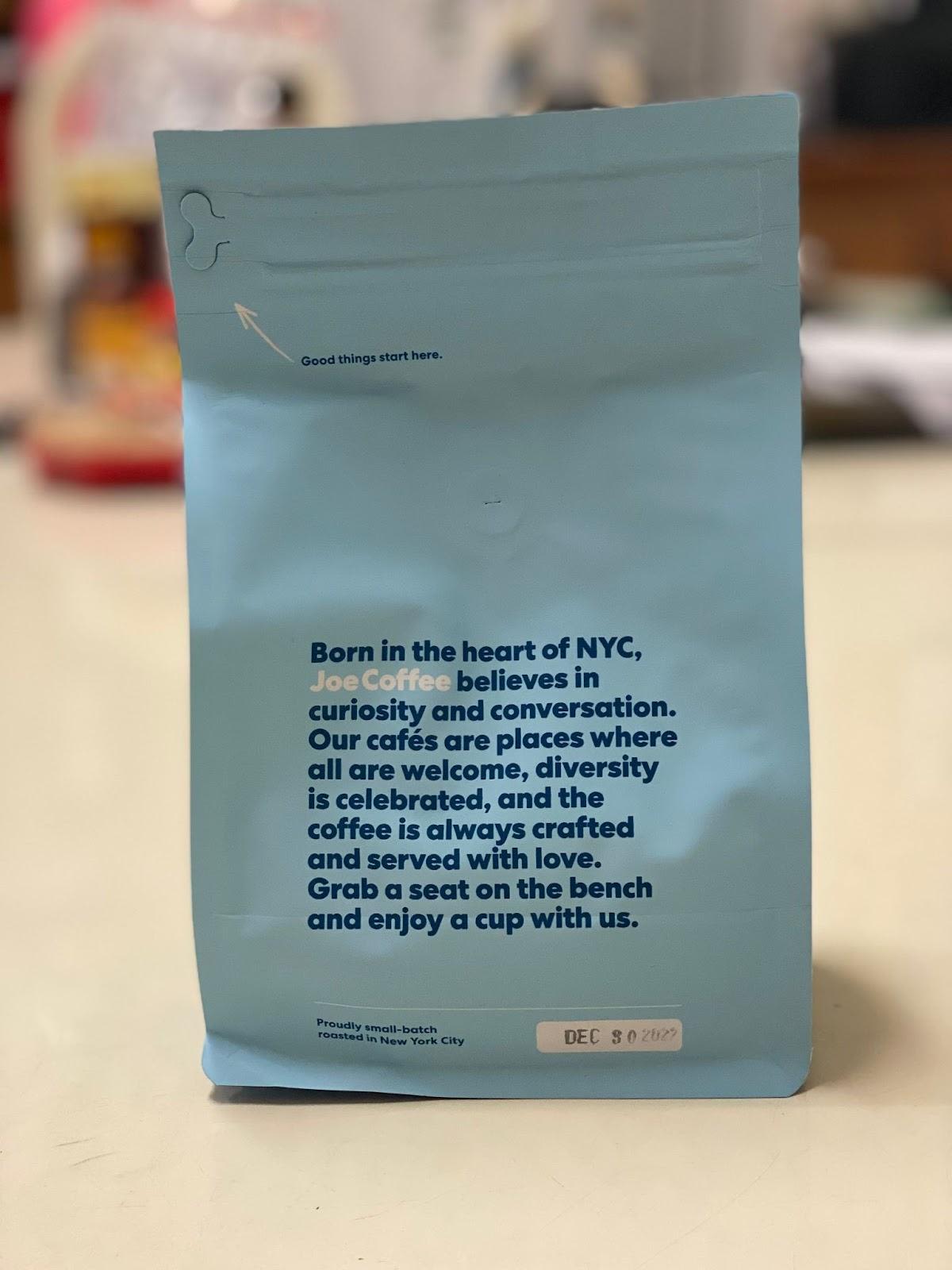 Joe Coffee is packaged in high-quality bags with crucial information such as tasting comments, roast levels and dates, processing techniques, producer, and so much more. This specific coffee might be a little pricey for single origin based coffee, costing around $23 for a 12oz bag. Given the quality of the beans and the company's production practices, you are definitely getting your money’s worth.