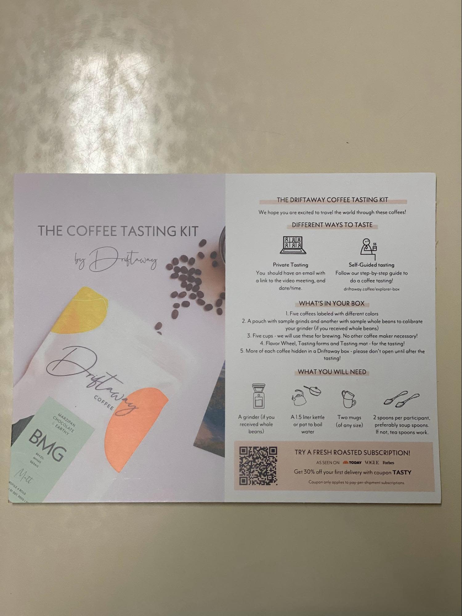 Once you sign up for a Driftaway subscription, the coffee adventure begins. You'll receive a personalized tasting kit containing four distinct coffee samples, each representing different flavor profiles. Take your time to savor and explore these coffees, noting the unique characteristics and preferences that emerge with each sip.
