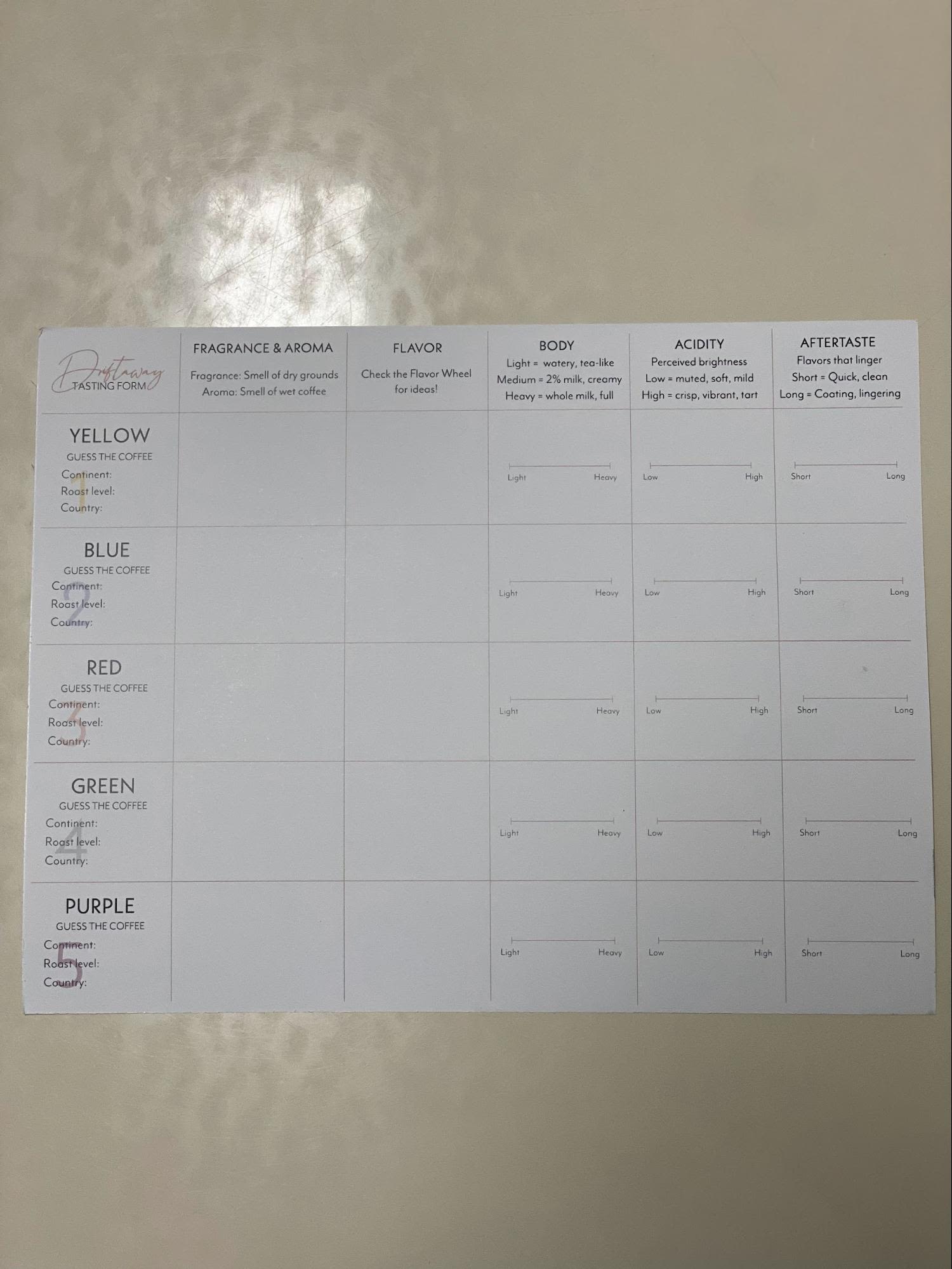 After tasting the coffees, it's time to provide feedback. Driftaway makes it easy with their user-friendly rating system. Simply rate each coffee based on your personal preferences. Your ratings serve as a valuable guide for future deliveries, ensuring that your subsequent shipments are tailored to your taste buds.