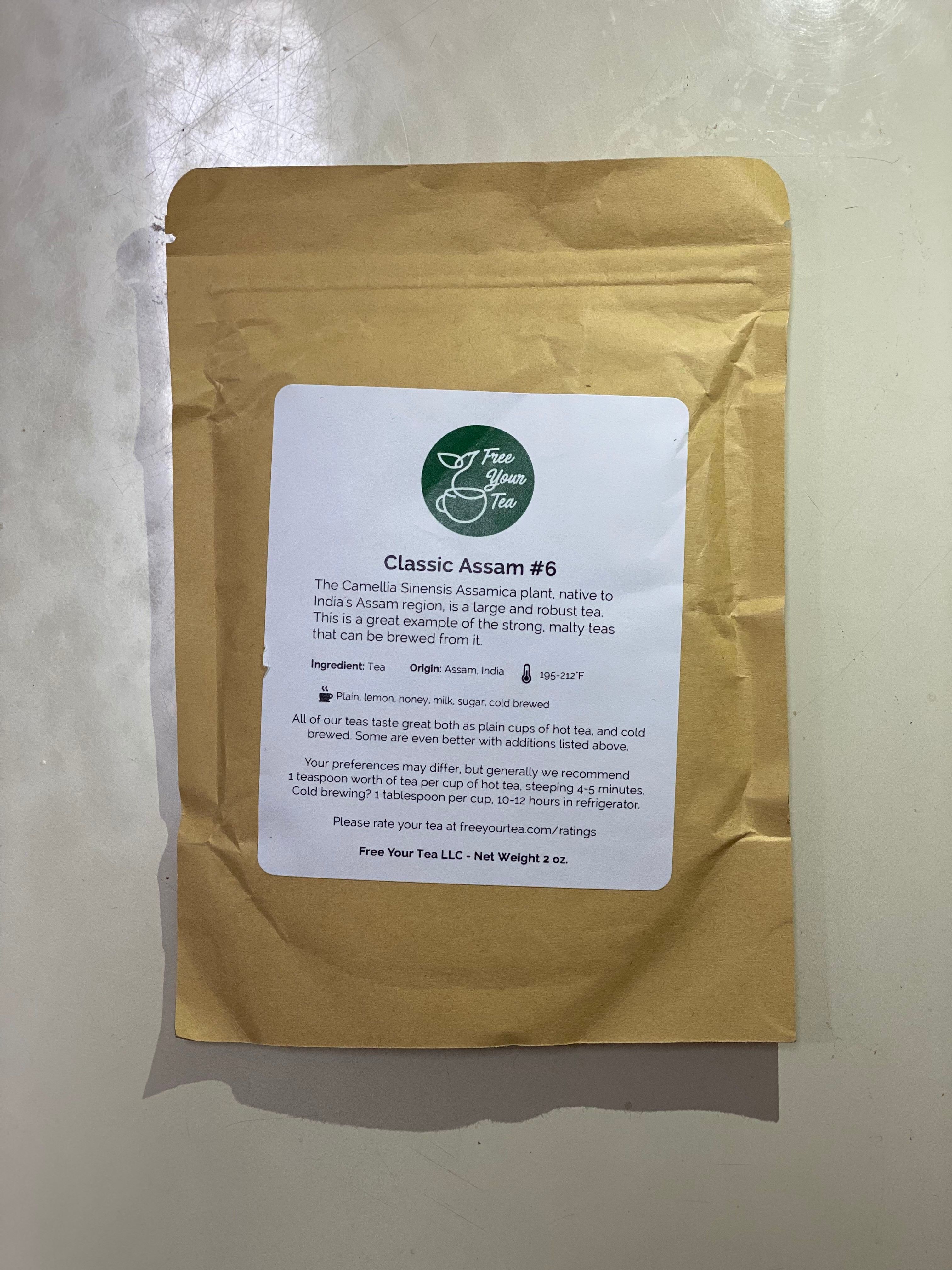 Free Your Tea Classic Assam is a premium loose leaf black tea sourced from the Assam region of India, which is known for producing bold and malty teas. The Classic Assam tea has a deep, rich flavor with notes of caramel and honey, making it a perfect morning tea. The tea is packaged in a resealable pouch that keeps the tea fresh, and subscribers can adjust the brewing instructions to their liking. Overall, "Free Your Tea Classic Assam" is a high-quality tea that is ideal for black tea lovers who want to experience the rich flavors of Assam tea.